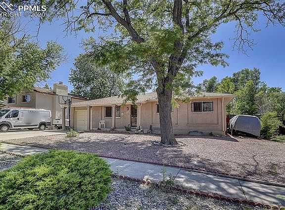 Beautiful ranch style home with fully finished basement! Incredible 5 bedrooms with 2 baths! New interior paint and flooring throughout the home. Huge yard has covered patio and garden. Views of the western mountains from the back yard. Mature trees in the front and back yard offering shade in the summer. Basement is finished with large family room, finished laundry room with sink, and storage area. Basement also has 2 more bedrooms and 3/4 bath. Great location near Fort Carson and Peterson Air Force Base. Also has easy access to I-25 and Academy Blvd. Close to schools, shopping and entertainment.