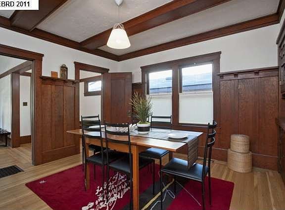 Lovingly restored and artfully renovated by its architect owner of seventeen years, this 1905 craftsman melds the architecture of its era with modern design elements in truly creative ways. Beside the entry staircase and deep red door, the striking garden of rich flax, delicate grasses, river rock and sculpted steel introduces the dominant theme of this home:  respect for forms and materials thoughtfully juxtaposed with extraordinary attention to detail.  Inside, century old  woodwork gleams under elegant lighting; every fixture, niche, and switchplate has been selected and placed with care.   This small home, like its delightful rear deck and garden, invites simplicity and exudes tranquility on a warm and friendly street close to downtown, the Central Berkeley Farmer's Market, and UC.