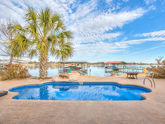 Experience premier lakefront living on Lake Nasworthy with owned lake frontage in one of the most desirable areas of the lake. This stunning 3-bedroom, 2-bath home offers approximately 1,940 square feet of thoughtfully designed space with breathtaking water views from numerous windows that overlook the patio and sparkling in-ground pool. Relax and entertain outdoors with a recently added pergola, hot tub and expansive patio. Recently added your private boat dock with lift—perfect for enjoying everything lake life has to offer. Inside, the home features stainless steel appliances, an inviting layout, and abundant natural light that brings the beauty of the lake indoors. Whether you're watching the sunrise over the water, lounging poolside, or heading out for a day on the boat, this property offers the ultimate in relaxation and lifestyle.