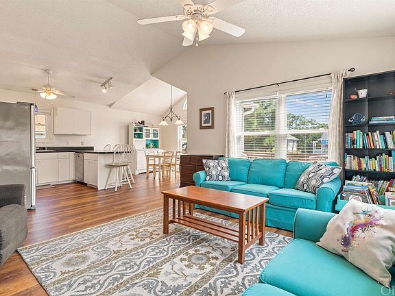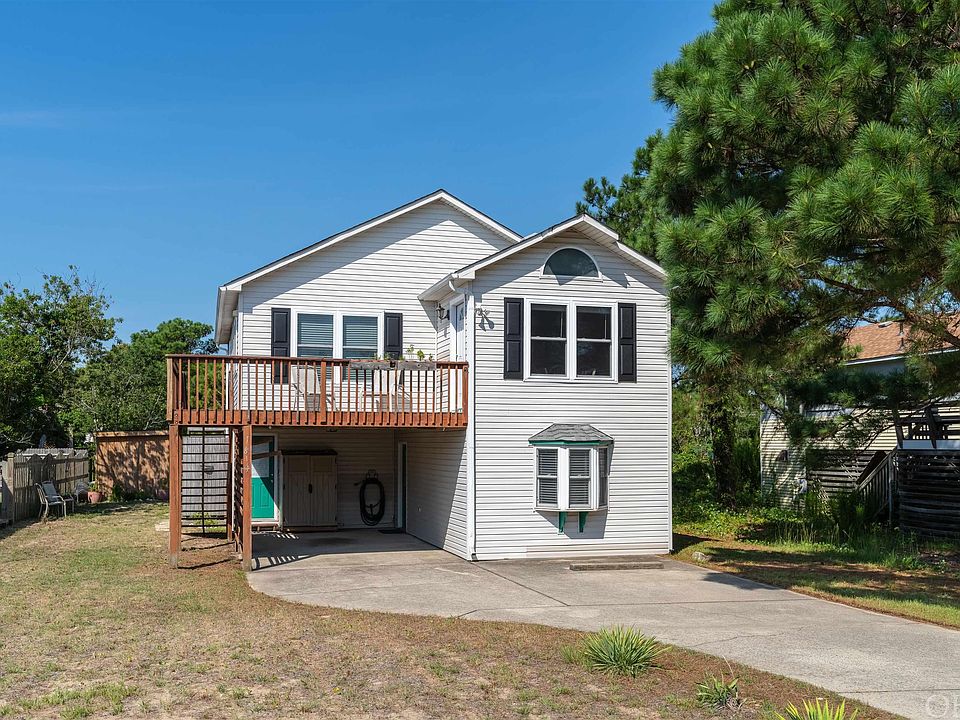 Close to ocean and sound with two separate living quarters. This house is located in the heart of Kill Devil Hills near the Bay Drive bike bath, grocery stores, movie theatre and beach accesses. Six blocks from nearest beach access and five blocks to enjoy sunsets on the soundside. The house offers the unique opportunity of one house with two kitchen/kitchenettes and living rooms, connected by an interior staircase that has doors that can be locked to create two separate units each with their own outside entrances. The laundry room is located in the hallway of staircase, and conveniently located for both upstairs and downstairs to use. Upstairs is a spacious two bedroom one bath with open kitchen, living room and dining. There are vaulted ceilings in the living room adding natural light to the open space. Downstairs is the large third bedroom with its own bath in the ground floor apartment. It also has an open kitchenette and living room. Outside is open yard with many possibilities; right now there is a garden and a shed. The outdoor shower is a nice bonus for coming back from the beach. The house gives you a few options, whether it be to live in one and rent out the other space, have two rentals or make it one single house. Don't miss the opportunities this home can provide you; come check it out today!