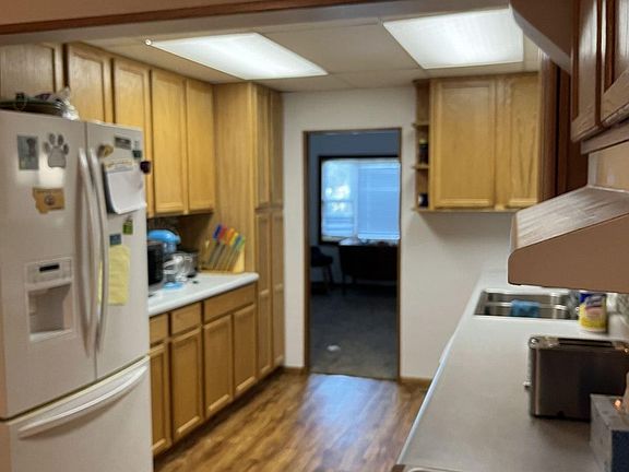 This property is situated on .88 Acres with 30' X 48' Shop that can double car garage and is heated by both natural gas and a wood stove. The shop has a bathroom plus a loft area, workshop area, wash machine hook ups, storage area plus another separate cold storage area with a garage door with a walk-out door. The lot has lots of area for storage plus 3 raised garden beds, storage shed, green house, a 20' X 30' lean-to storage area plus a covered deck that attached the home to the shop. The main floor of the home has a 3/4 -bathroom,1 full bathroom with a Jacuzzi tub, laundry room, kitchen with a dining area, master bedroom. bedroom/office, and a living room. The second level has 2 bedrooms. There are updated carpeting in several rooms plus the main floor living room was gutted to the studs and remodeled in 2017. This property has an updated electrical panel. The basement area is unfinished with the furnace, hot water heater, 2 sump pumps and has plenty of storage area. Need 24 hours' notice to show property.