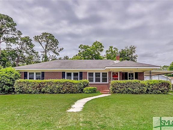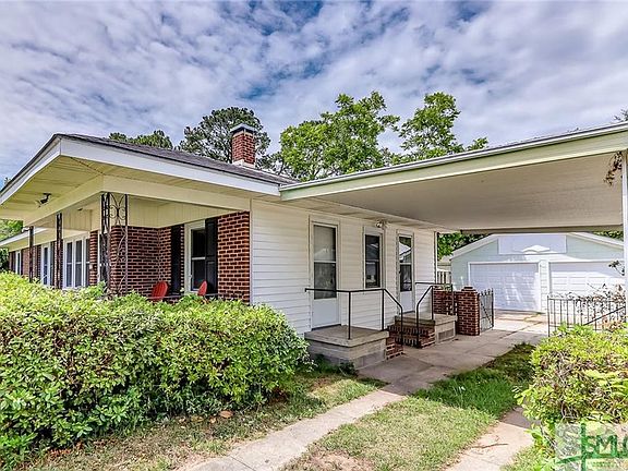 Charming 3 bed 2 bath one level home with a large tiled office/ "flex" room. Original hardwood oak floors throughout living room, dining, hallway and all 3 bedrooms. No carpet in house. The kitchen features stainless steel appliances, gas stove, tile flooring and lots of cabinets. The master has double closets. Guest rooms are nice sized with closets and a linen closet is in the hallway. Laundry room with exterior exit. Fabulous "trex" deck in the back overlooking spacious backyard. Handy carport at side door which enters the office/flex room or laundry. Detached oversized double garage/ workshop too! Fabulous location close to Truman Parkway, Downtown Savannah, Tybee Island beach and all creative comforts!