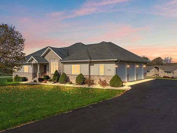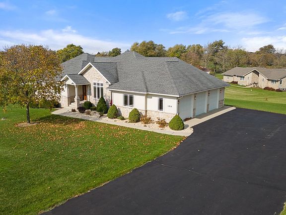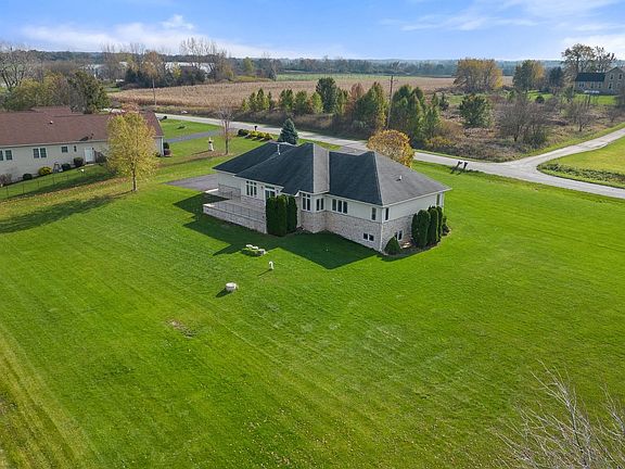 Welcome to this stately 2,079 sq ft sprawling ranch that sits overlooking Tuckaway Golf Club. This full custom stone and stucco ranch boasts over an acre lot, a side-loading 3.5 car garage, and a full bright basement that adds another 2,079 sq ft to your living space! The beautiful covered porch greets you into a sunny and spacious foyer. An open concept floor plan showcases the dining room and a large living room with gas fireplace and beautiful views of the backyard. 10' ceilings on the entire main floor with Andersen windows throughout as well. The kitchen is adorned with KraftMaid solid wood cabinetry and appliances that stay. Enjoy coffee and entertaining in the dine-in area of the kitchen next to the large windows, and an Andersen slider that leads you out to the nearly 25x11 terrace. The primary bedroom is spacious and offers a large custom closet, as well as an en-suite spa bath with jacuzzi tub, step-in shower and double sinks. Two additional large bedrooms share the second full bath. Finished main floor laundry room with custom cabinetry and folding counter, along with a charming powder room round out the main floor. The basement boasts nearly 9' ceilings and truly feels like a second home with space to customize it into your dream rec room. Need additional bedrooms? There are 2 large egress windows that could be used for adding those! Or keep it open and bright just as it is! Reverse osmosis system, owned water softener and much more. Schedule your showing today!