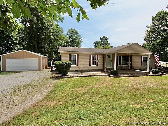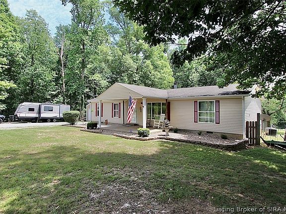 COME HOME TO THE COUNTRY!!! 3BR/2BA approx 1400SF home w/2 car detached garage resting on 5+ partially fenced acres and ready for chickens, goats or whatever suits your fancy. NEWER dimensional shingle roof, NEW AC installed approx 2021, mostly rebuilt/NEW deck and steps, oven/range/hood, new toilets in both bathrooms, ceiling fans, small livestock barn built last spring......NOT EXPECTED TO LAST AT THIS PRICE FOR THIS HOME ON THIS AMOUNT OF LAND. You will love this nice, tranquil, rural setting just 7 miles off I-65 Henryville exit, 12 minutes to Henryville IGA grocery store, 15 minutes to the Forestry and 29 minutes to Veterans Pkwy exit. Please include pre-approval and allow at least 24 hours response time to any offer.