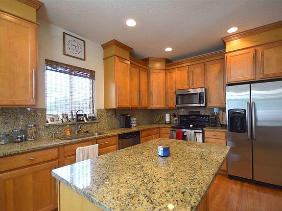 This beautiful 4 bedroom home built in 2005 and has been fully custom finished inside and out! Located just a block from the Elks Lodge golf course and private pool, this home is open, bright, and perfect for family and entertaining. From the beautiful stone wall and fireplace in the family room, to the custom kitchen with granite counters and island, custom solid wood cabinetry, matching stainless appliances, and hardwood floors, the main floor features large columns, 9 foot ceilings, a cozy sunroom off the family room and kitchen with a custom stained concrete patio and fenced in back yard. The large master suite has vaulted ceilings and jetted Jacuzzi tub in the master suite bathroom. This is just the start of this custom finished home that includes a partially finish basement with tall ceilings and loads of storage and a 3 car garage.