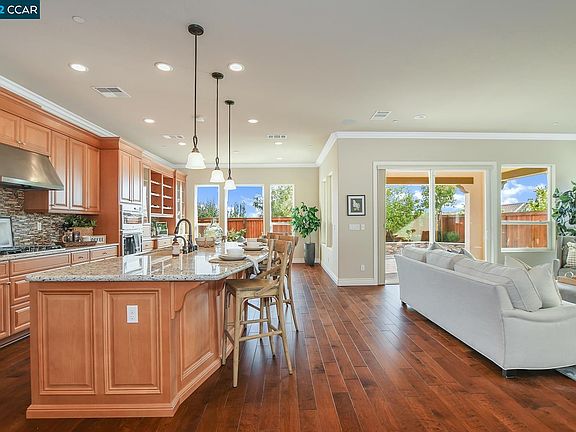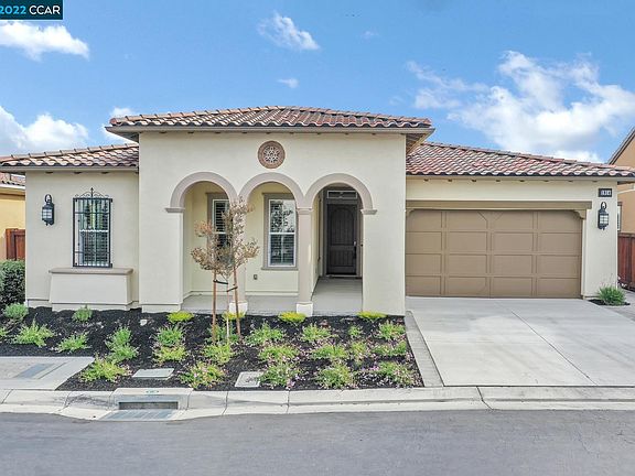 The Vendange is a sought-after three-bedroom floor plan that also features a great room with fireplace, a separate den, a 3 car garage, kitchen with oversized island, sunny breakfast nook, spacious master suite and more! This home features warm and inviting finishes throughout including two-tone paint, crown moldings, real hardwood floors, built-ins and more! East facing for morning sun and shady afternoons on the covered patio in the elevated, private backyard. Don't miss this opportunity in Trilogy at the Vineyards, the East Bay's premier 55+ Resort Style Active Adult Community!
