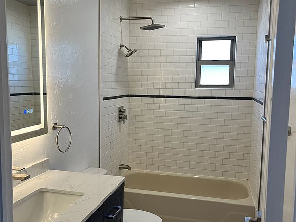 Gorgeous, Fully Renovated Bathroom: Enjoy the luxury of a new vanity, a lighted mirror, instant hot water, a rainhead shower, and stylish new tile.