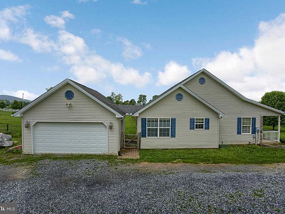 Rural America at its best, but a very short drive to Interstate High way. Charming, well maintained Ranch on 1.8 acres with 3 Bedrooms all with walk in closets and ceiling fans. 2 full baths both with tub/shower combos, and a huge eat in kitchen. Situated off the kitchen are laundry room and pantry. Out side the kitchen door sits a detached 2 car garage, and patio. Oh yeah there is a full unfinished basement with bilco door and Radon system in place. If you like the view of farm lands, and small rolling hills, the full covered front porch awaits.