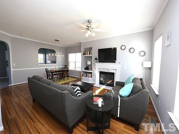 Premier lot backing up to US Corp of Engineer land - Enjoy the tranquility, privacy & nature at its best - Bright & Sunny floor plan - New Bamboo hardwood floors in liv/dining - New tile in kitchen - SS appliances & corner sink in kitchen w/ windows overlooking backyard - pass thru from kitchen to dining - Luxurious master suite w/ vaulted ceiling, oversized tub & sep shower - Tankless hot water heater - Fenced in level backyard - Neighborhood pool & tennis - Close to Southpointe, I-40 & RTP