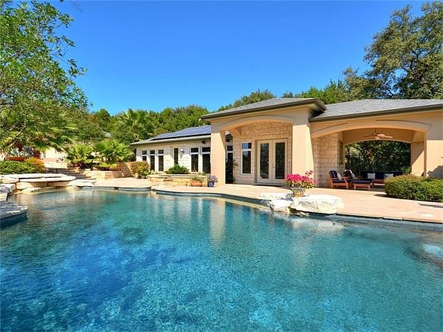 Stunning home in Eanes, minutes from downtown. On 2 lots, double gated, high tech security with cameras. Green belt on 3 sides with private green belt access to Barton Creek. Open floor plan, hardwoods, cork, and tile flooring, Granite counter tops. Updated 2016/17. Hill country views surround the house. Separate private guest house with full bath and kitchen. Large resort style pool with spa, waterfalls, and cabana. 5.5 car garage. Solar panels and water well keep utility costs low.