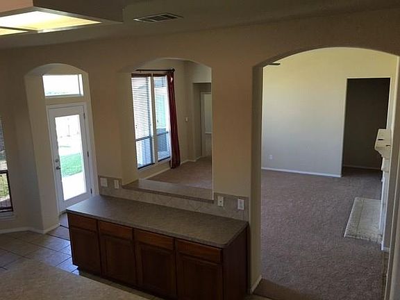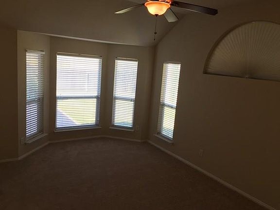 One Story three sides brick, four bedroom, tow bath with custom interior, new carpet, entire house inside and out new paint, fans and updated lightening in most rooms, lrg master with walk in closet, garden tub and double vanity, and island kitchen with black range and stove, microwave. Professionally landscaped with water feature. Automatic sprinkler syste,.