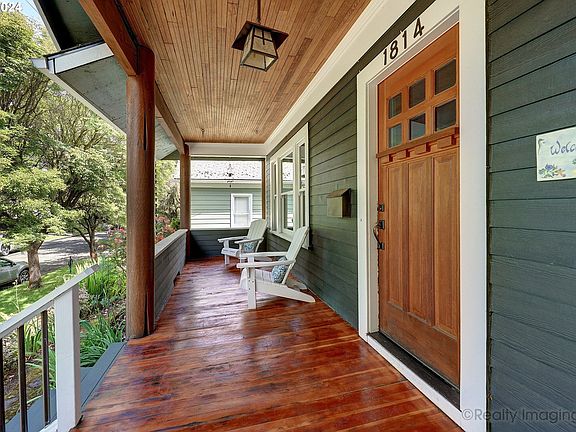 Updated Craftsman in spectacular SE location on double lot. Wrap around porch. Living room with wood fireplace, hardwoods & built-ins. Dining room with wainscoting, hardwoods & built in window bench with storage. Updated kitchen with new quartz countertops, undermount sink and french doors to deck. Fresh interior paint. Newer double paned wood windows throughout. Two bedrooms on main, one with an exterior entrance to side porch. Second floor permitted remodeled in 2002 is engineered to actually float above main level. Upper level features primary suite with Juliet balconies facing Mt Tabor, family room with balcony & built ins. Second bedroom up with multiple closets. Bathroom with spacious walk in shower. Radiant heat, bamboo floors & vaulted ceilings upstairs. Deck right off the kitchen gives easy access for tending the grill. Fruit trees, berries and a wonderful array of flowers. New roof 2023. Hardiplank siding, copper water lines, updated electrical with all knob & tube removed. The double lot has endless options...From crocquet to a cottage ADU, or both! [Home Energy Score = 3. HES Report at https://rpt.greenbuildingregistry.com/hes/OR10229284]