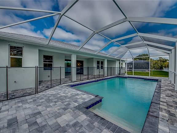 NEW CONSTRUCTION FRESHWATER POOL HOME IN SW CAPE TO BE COMPLETED IN MARCH! This 4 Bedroom, 3 Bath, 2 Car Garage home comes with all the Bells and Whistles. Home is 2,010 sq ft under air with a total of 3,998 sq ft when you include your 1,402 sq ft lanai with an oversized pool! The Kitchen has been decked out with 42" All Wood Cabinets, Stainless Steel Appliances, Granite Countertops, and a huge Kitchen Island. Designer plank tile flooring installed throughout the main living areas and Carpet in the Bedrooms. This home has a Paver driveway, Paver pool deck, complete landscape package with sprinkler system and flora tan sod. The interior specs are 12' Ceiling in living area, 8' doors, 5 1/4" Baseboard with 3 1/4" Casings, Soffit lighting outside, Frameless Glass Shower Enclosure, Stand Alone tub in the master bath, Trey Ceilings in the living room and master bedroom, pendant lighting in the kitchen, pool bath and so much more. This home is located in the desirable SW section of Cape Coral, has Southern Exposure and comes with a 1 year builder warranty.