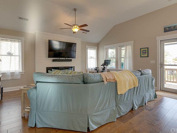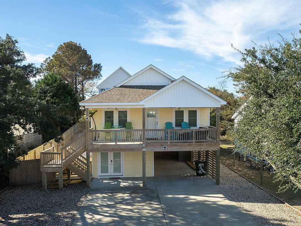 Shows like new and central location! This coastal cutie 3 bedroom 2.5 bath home was built in 2017, has never been rented, and used majority as a second home. You will be impressed with the efficient & open floor plan of the this beach box! With dry entry, extra permitted storage added in fall 2023, half bath added in fall 2023, an updated ensuite bath in primary bedroom, elegant kitchen with classic white cabinets and granite counter top/island, fenced yard w/ retaining wall, lots of deck and outdoor living space, and an outdoor shower. This home is in an X flood zone and does not require flood insurance. Quick walk to Bay Drive for the best sunsets and sound front bike path. Quick walk, bike, or golf cart ride to 3rd street with stop light and crosswalk.