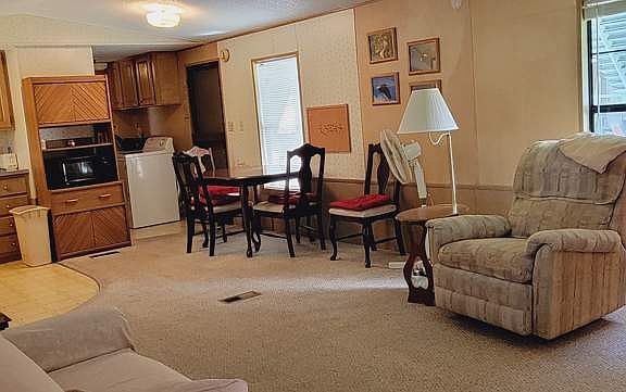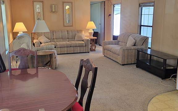 This open concept, spacious 2 bedroom/2 bath split floorplan home with a large screened in porch sits on a corner lot. It has a new roof, Trane AC, and landscape with irrigation. It is fully furnished down to the dishes, pots and pans and pool toys! Located in a 55+ very popular community with a newly remodeled clubhouse, a heated pool with spa, shuffleboard, a dog park and more. The location is close to Lake Griffin (part of the Harris Chain of Lakes), The Villages and several nearby quaint downtown shopping areas such as downtown Leesburg, Tavares and Mount Dora. Don't wait to see it! Inventory is very low.