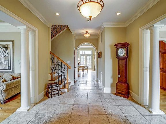 Masterfully designed stone and stucco European inspired custom home. Enter through an antiqued front door and step onto beautiful tumbled marble flooring. 10' ceilings on main level and 9' everywhere else. Exquisite coffered ceiling in Great Room and Breakfast Room. Open floor plan w/gourmet kitchen featuring cherry cabinets, custom lighting, 5-Star 6-burner gas stove w/double ovens and griddle, warming drawer and Viking refrigerator. The Great Room has a gas-fed wood burning fireplace w/a custom designed hand made brick hearth. First floor Master Retreat warms cold winter evenings w/its own gas fireplace(with timer),whirlpool bath, dual shower heads and 2 custom designed walk-in closets. Oversized 3 CAR GARAGE.