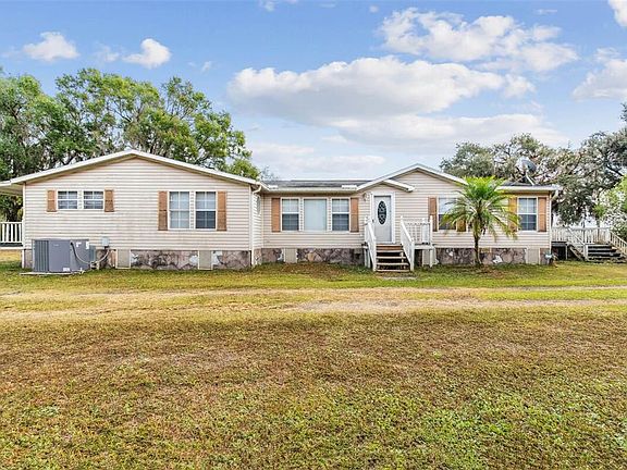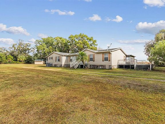 Discover the perfect blend of country living and modern convenience with this Beautiful Country Estate situated on 10.13 fully fenced, high-and-dry acres. Offering space, privacy, and versatility, this property is a rare opportunity for those seeking room to roam without sacrificing proximity to town. The four-bedroom, two-bathroom manufactured home boasts 2,322 square feet of well-designed living space and was built in 2000. Inside, you’ll find both a separate Great Room and Living Room, giving you the flexibility to entertain, relax, or create the perfect layout for your lifestyle. The Living Room features a cozy fireplace, adding warmth and charm. The spacious kitchen includes a breakfast bar, making it the perfect spot for casual meals or entertaining. A new HVAC system installed in 2024 provides comfort and peace of mind. The primary bedroom offers a private retreat with its ensuite bathroom featuring a garden tub and walk-in shower, providing a spa-like escape at the end of the day. Outdoor living is just as inviting. Enjoy a very large screened-in back patio, ideal for gatherings, relaxation, and enjoying the fresh country air without the bugs. Step out onto the uncovered deck, perfect for barbecues, sunbathing, or hosting parties with plenty of room for guests. For equestrian enthusiasts or those seeking farm-ready amenities, the property features a Horse Barn with 7 stalls, a tack room, and 2 additional stalls currently used for storage. Whether you have horses, livestock, or simply need extra space, this setup is ready to go. A separate 1-bedroom, 1-bath cabin adds even more value and versatility—ideal for an office, rental opportunity, guest quarters, or the ultimate man cave. Bring your vehicles, boat, 4-wheeler, or work equipment—the expansive carport offers ample covered space for parking and storage. With the entire property fully fenced and zoned AR, you have endless options for gardening, animals, hobbies, or simply enjoying the quiet of your own private acreage. Despite its private setting, this estate is conveniently located. Just minutes from downtown Zephyrhills for shopping, dining, and everyday necessities, it also offers an easy commute to Plant City, Wesley Chapel, Lakeland, Tampa, and other surrounding areas. You’re just 20 minutes from all the amenities of Wesley Chapel and about 30 minutes to Tampa and Lakeland, giving you quick access to anything you might need. If you’ve been searching for a property that provides space to spread out while keeping you close to everything, this one checks every box. With its rural charm, modern comforts, and unbeatable location, this is your chance to make your mark on an exceptional piece of Florida land. Don’t miss out—properties like this are truly one of a kind!