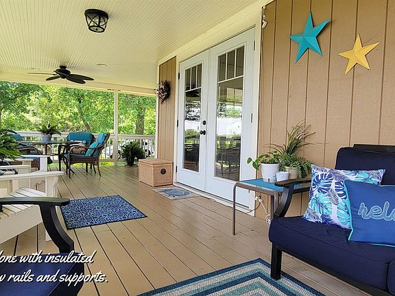 Back on the market, through no fault of the home. YOUR DREAM LAKE HOME IS ON THE MARKET with 32x50 outbuilding overlooking Truman Lake in popular STERETT CREEK VILLAGE! This remodeled cottage style home sits on approx 1/2 acre on a large corner lot just above Beyonder Marina. Enjoy the wonderful views & breezes coming off the Truman Lake on this massive wrap around porch. The open floorplan makes for wonderful entertaining. Soaring beamed ceilings & hardwood floors in the entry, dining & kitchen. Completely remodeled vintage looking kitchen boasts of custom inset cabinets, granite counters, stainless appliances & large pantry. Spacious dining area and sitting area to enjoy after a long day on the lake. The oversized living room has a natural stone gas fireplace, custom built ins & large storage closet. The newer windows let in tons of natural light. Main floor bedroom has beautiful bead board & access to laundry. Main floor bath with walk-in shower. Up the open staircase to an expansive loft that holds 2 queen beds with room for more. Wake up to the lovely views out the upper window. Large upper bedroom has so much character with its own newly remodeled private bath. Upper bath has new soaker tub and carrara look tile & chandelier for that vintage look. There is a large attached garage that has been mostly used for storage, but could be converted to another large master bedroom. Expansive backyard with fully fence with chain link. The massive 50x32 metal framed outbuilding will hold up to 9 vehicles, large insulated doors, 20 ft storage loft and large driveway make for easy access for trucks or boats. Walk or drive your golf cart down to the marina to enjoy year round fishing, food & drink with some entertainment on the weekends. This wonderful community boasts of community pool and shelter house for yearly events. Owner has done many upgrades since purchase to include roof, HVAC system including new insulated duct work. Plumbing was replaced with Pex, spray foamed whole underside of house, new windows & interior & exterior doors. All new lighting, bead board installed, hardwood flooring, carpet, new gas fireplace insert, fencing, new porch ceiling w/insulation, rails, fans & so much more!! Partial lake view in summer, full view in fall & winter, but permission has been given to clear treed area for year around full view. Minutes to Warsaw and shopping. OWNER/AGENT