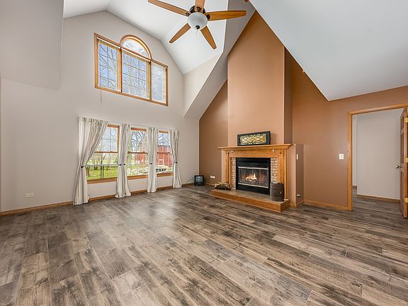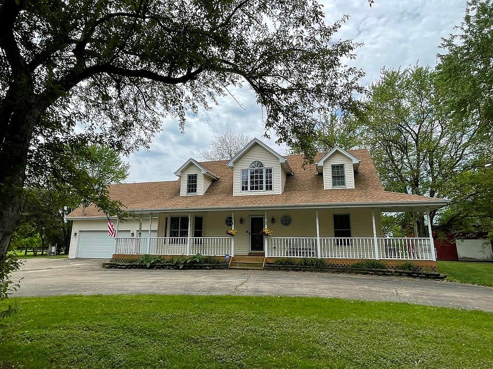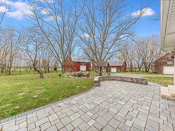 This great home is situated on nearly 10 acres (9.6)! Located across the street from the Chicagoland Speedway. This spacious estate has tons of space and options for everyone! Large barn w/ horse stalls, multiple sheds and old corn crib. The stocked pond is perfect for fishing, swimming or boating! The home has approx 3000 sq feet and features a covered front porch, large open kitchen with ample cabinets and counter space, sunroom located just off the kitchen that leads to newer brick paver patio. Huge main floor master suite! 2 large bedrooms upstairs PLUS 15x39 bonus room. Finished basement with full bathroom and plenty of storage space.