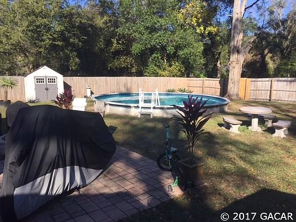 Only Minutes away from Downtown High Springs and Minutes away from fresh water springs, this Solid Concrete Block constructed home is a must see. This home is a great value with its multiple car carport, large storage shed, pool, irrigation system privacy fence, roses and landscaping. The indoor utility laundry room and updated windows make this home a great value. The added wood burning is additional item that helps reduce heating cost. The fenced in back yard with sitting area, and pool make it ideal for parents.
