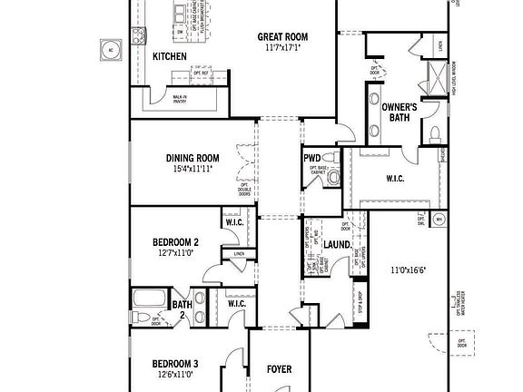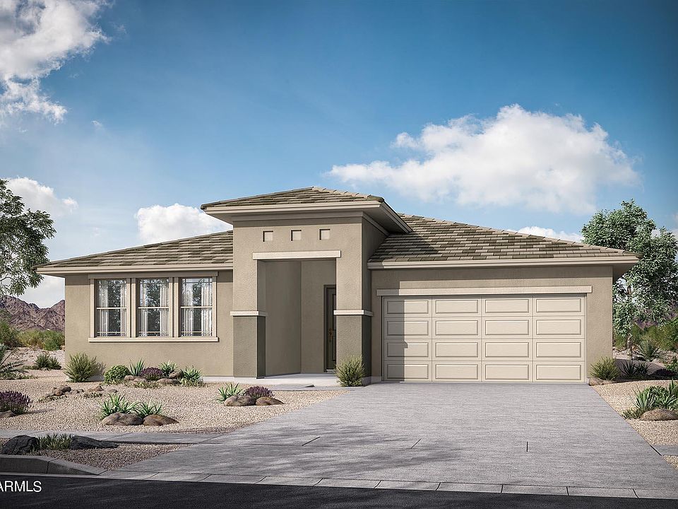 Large single level home with an open concept flow! The front bedroom has a private bathroom while the other 2 secondary bedrooms share an adjoining bathroom and a powder room for guests. The Gourmet Kitchen overlooks the breakfast nook and spacious great room and features stainless steel kitchenAid appliances, large island, huge walk-in pantry, White and black Shaker cabinets complimented by a satin finish granite countertop! Faux wood plank tile throughout the living spaces and carpet at the bedrooms. Primary bath has a walk-in shower with tile surround, double vanity, huge linen closet and walk in closet. Home warranty included. Convenient location with close access to I-10 and Loop 303. Ask about special financing incentives with preferred lender.