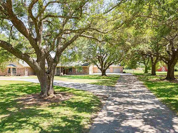 Wide open spaces on Westbury in China TX! So much curb appeal from rows of mature oak trees & fresh landscaping.Home is situated on 2.615 acres. Home has so many special extras and is filled with character & charm. Five car garage w/ circle drive (tons of parking) Two living areas, large kitchen with island work center. Beautiful bead board ceilings in the sun room and the breakfast nook and tons of lawyer block really dress up this home. Total of 3 bedrooms & 3.5 baths. Master suite is huge with sitting area and double sided fireplace for bedroom and bath. Bath has two separate vanities w/ sinks, jetted tub and separate walk-in shower. The additional two bedrooms are nice in size with a full bath in one of the bedrooms and one by the pool for guests. This house screams entertaining! Tons of space in the backyard with the fenced inground pool & covered patio. Redone barn with horse stalls.Barn has an upper level that could easily be converted into a guest apartment for rental income!