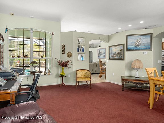 Tucked away on over an acre of land is this 3 Bedroom POOL home built by Artistic and waiting for you to make it yours. Enjoy the privacy of this corner lot and nature surrounding you. Plenty of opportunity on 1.2 acres for a garden, play area, and to park all your toys. Through the double door entry is space for everyone. Plenty of options to gather for a meal in your formal dining room, eat in kitchen, a casual grill night outside on your patio or grab a snack and a cup of coffee at your breakfast bar. If you're not relaxing by the pool on your beautiful brick paved, newly screened lanai, you can explore all the outdoor life that the Nature Coast has to offer along the Weeki Wachee or Homosassa River and so much more. Split plan gives a private Main Bedroom with ensuite bath and sliding doors to the pool area. Access to the second bath from the pool makes it convenient after playing outside or a day in the sun. A BRAND NEW ROOF and newer AC bring peace of mind for years to come. You'll appreciate the extras like 10 foot ceilings, Stainless Steel Whirlpool appliances, custom built-in in Living room, Large laundry room, 3 car garage and more. Quick access to Commercial Way/19 makes all the amenities just minutes away. Come see for yourself all this home has to offer. Remediated sinkhole (2009) with engineer's reports available. Make your showing appointment today!