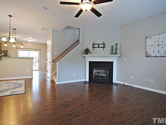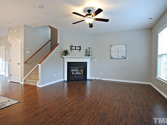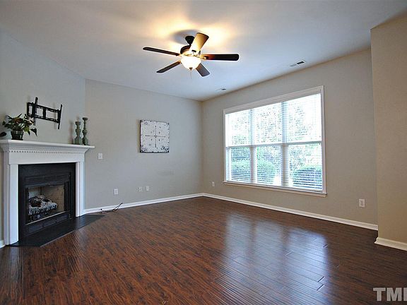 Beautiful transitional w/ bright open floor plan close to shopping,dining, Falls Lake and I-540. Laminate hardwoods on entire 1st floor. Family Room w/ gas log fireplace & ceiling fan. Sunny Dining room. Kitchen w/ granite, 42" cabinets, stainless appliances, smooth top range w/dbl oven & pantry. Master bedroom w/ Lrg walk-in closet & ceiling fan. Master bath tile floor. Spacious secondary bedrooms. Separate laundry room. Great fenced backyard w/ storage bldg, patio & fire pit.Frig, wash & dryer included!