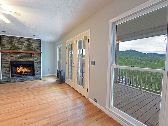 YEAR-ROUND STUNNING VIEWS. Experience fabulous sunrise and sunsets along with the 4 breath-taking seasonal changes. Situated convenient to Blairsville, Hiawassee & Hayesville for shopping, sight-seeing, hiking, boating, trout fishing, numerous vineyards, wineries & breweries. Also close to the John Campbell Folk School, Peacock Performing Arts Center & William Holland Retreat. This spacious home has a huge MASTER SUITE and second EN SUITE GUEST ROOM on the main floor. Mountain views visible from the OPEN CONCEPT living/dining/kitchen area. Gas log fireplace. Enclosed SUNROOM has easy RAMP access. FULL LENGTH DECK for entertaining and relaxing. Convenient 2 Car Attached Garage, Powder Room, large storage/coat Closet and huge Laundry Room on the main level. Terrace level has three FINISHED rooms and a third FULL BATH, WORKSHOP & additional laundry hook up. Small fenced area in back. Established quiet neighborhood. Clean and ready for your personal finishing touch!!
