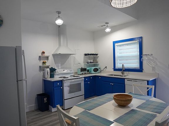 The cottage is decorated after the cave houses on the Island of Santorini in Greece. Fully furnished and utilities/Internet are all included in the rent. The distinct blue and white bring the Santorini style to your stay. The cottage has a fenced-in yard with a dome gazebo. It is a welcoming place for a family of two, or add two small kids and their furry friend. 100Mbps WIFI high speed internet. Outdoor security cameras are installed to ensure the max safety of our guests and property. Fully furnished and all utilities included(water, trash, sewer, electricity, internet). No Smoking allowed. Lease is flexible from weekly to monthly depending on the availability of the house. (Note: a 13.5% occupancy tax will be charged on top of the rent if the lease is less than 90 days) A $130 cleaning fee will be part of the lease. A $80/pet fee will be charged for pet(s).