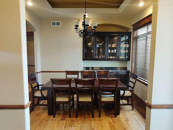 Exquisite, close-in, ranch-style on close to eight beautifully landscaped acres. There's so much to love about this magnificent home, including five bedrooms, five fabulous baths, classy theater room, exercise, and bonus room! Gorgeous custom granite island in the kitchen. Kitchen bar, Stunning wet bar in basement. Large covered patio off the back, plus a Gazebo with a cozy fireplace. Walk-in Vault, Tiled Roof, Picture frame hardwood floors and timber beam through out. Very spacious yet practical layout.