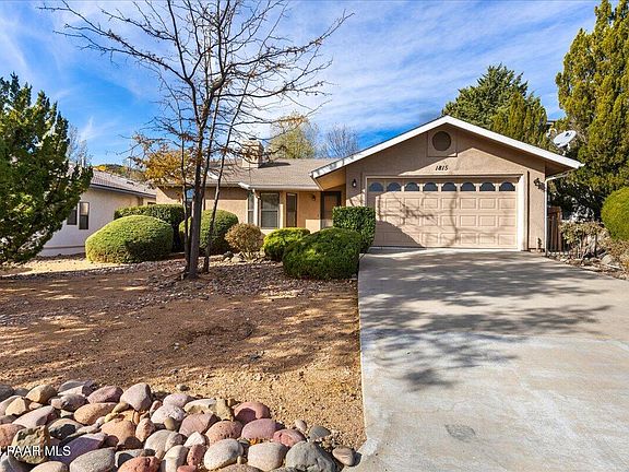 Welcome to this charming 3-bedroom 2-bath home in Prescott's highly desirable Cliff Rose neighborhood. Known for its breathtaking views, convenient location, and serene atmosphere, Cliff Rose offers a lifestyle of comfort and natural beauty. The property highlights include a spacious, open floor plan perfect for those who love to entertain. The gas fireplace is a cozy centerpiece in the living room, ideal for chilly Prescott evenings. The bright kitchen features modern appliances, ample storage, and plenty of counter space. The primary suite includes an updated en-suite bath. The backyard boasts a peaceful patio space and is beautifully landscaped. The home has been painted and has new floors, lighting, and ceiling fans. Both bathrooms have very nice new updates. It is truly CONT.