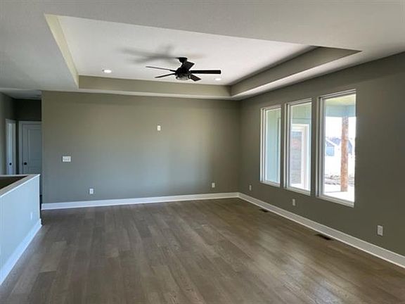 Beautifully finished new construction home in Raymore! Home features 4 bedrooms, 3 full bathrooms and 1 half bath, main floor owners suite and laundry, walk-in pantry, spacious kitchen/dining/great room with adjacent access to the covered deck. Granite countertops throughout the entire home. Master bath has his and hers vanities, large walk-in closet. Lower level features two bedrooms, full bathroom and large rec room with sink.