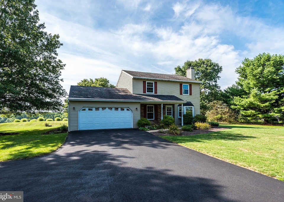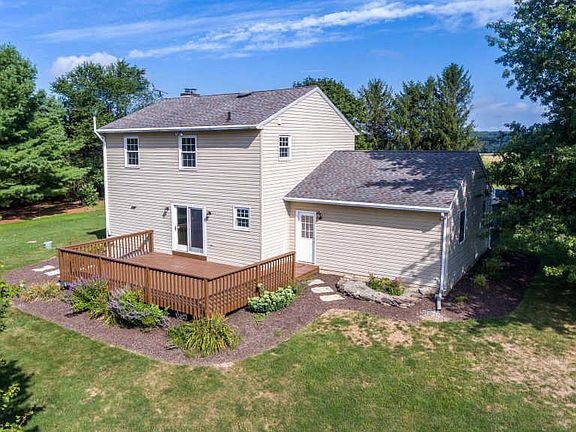 Move right in and unpack!! Great home meticulously maintained by original owners. Beautiful lot(over 2acres) backs to horse farm with trees framing the front and back. Entire home has just been painted and all new flooring in living room and dining room ; new carpeting on stairs, hallway and all bedrooms. Hardwood flooring in kitchen and tile in both bathrooms and laundry room. Full bathroom has been totally renovated with double vanities and granite countertops, and frameless glass doors to shower and tub. Upstairs the 4bedrooms are well sized and ample closet space. Extra large eat-in kitchen with brand new samsung refrigerator and bosch dishwasher. Corian countertops and Butcher block top above dishwasher. Sliding doors open to large deck perfect for entertaining. First floor laundry room with storage and brand new washer and dryer! Peaceful expansive backyard with great landscaping and extra large shed. HVAC has been replaced under 1 yr ago. Hot Water heater replaced last month. Unfinished basement was just painted and waiting on your finishing touches; bilco doors to back yard. Whole house generator fueled with propane included with property.
