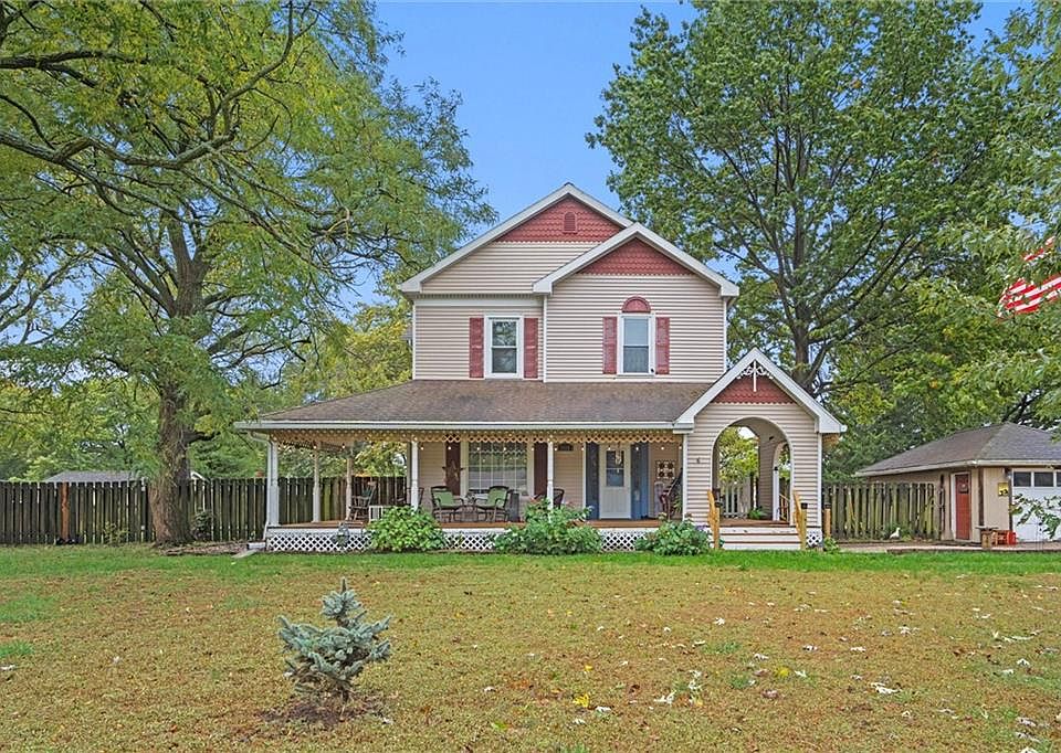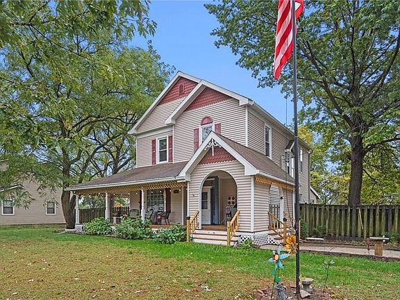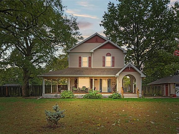 Welcome to this elegant Victorian style 2 story home, offering timeless charm and inviting spaces throughout. A grand, welcoming front entry sets the tone as you step inside, leading to a warm and spacious interior that blends classic character with modern updates. Featuring four generous sized bedrooms, one full bath, upstairs and one half bath, on the main, this homes offers comfort and functionality for todays lifestyle. Enjoy new pergo floors throughout the main level and cozy up to two fireplaces, adding warmth and ambiance to the entry and family rooms. The chefs kitchen is a standout and, complete with stainless steel appliances, gas stove, prep island and ample counter and cabinet space-perfect for cooking and entertaining. A separate laundry room provides added convenience. Outside, relax or entertain, on the enclosed back patio, or enjoy the wrap around front porch overlooking the spacious .40 acre lot. A detached one-car garage adds additional storage and practicality. This home captures the best of classic architecture and modern living- a truly special property ready to welcome its new owner.