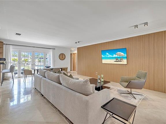 Courtesy of Beachfront Realty Inc Elegantly renovated and fully furnished, this modern waterfront home is nestled within the exclusive, guard-gated Biscayne Point community. Thoughtfully designed for seamless indoor-outdoor living, the residence boasts a lush garden, multi-level pool area, and a private dock with 60 feet of water frontageperfect for a 30-foot boat and a jetski. Enjoy sophisticated living in a tropical paradise and embrace the ultimate Miami waterfront lifestyle. An exceptional lease opportunity not to be missed!