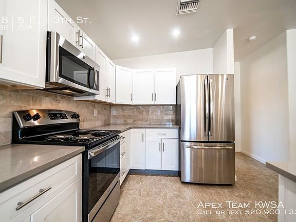 Gorgeous in-progress remodel across from Cherry Field and about a mile from the U of A. This home features tile floors throughout and an open floor plan to the living room and kitchen. Kitchen island utilizes space and gives a clean distinction between kitchen and living room area. Come check this space out today!. The kitchen comes loaded with granite counter tops and new stainless steel appliances. Each bedroom has a ceiling fan and great closet space. Brand new central heat & A/C unit. This property is just a dream for friends and great for entertaining. Photos are of similar remodels completed by the same construction team!. Application Fee: $40 (criminal, credit, & eviction check conducted). Security Deposit is $1900. This includes a $1400 refundable security deposit, a $350 non refundable cleaning fee and a $150 non refundable leasing fee. 1st month rent due at lease signing. Parental guarantor required if unable to verify income. Professionally managed by Apex Team with Keller Williams of Southern Arizona. Designated Broker: Jodi Koch.