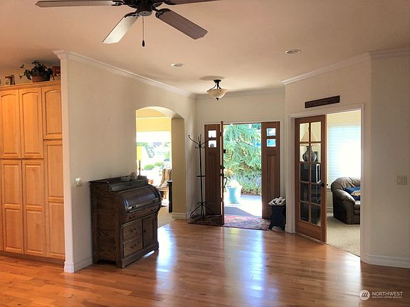 Stunning craftsman home providing one level living in an open concept plan. Large family room open to kitchen and dining. Great for those large gatherings. Formal living room for intimate conversations. Office/den for work at home or quiet reading. Kitchen features abundant storage with informal dining area. Fisher Paykel dish drawer and stainless appliances. Generous sized guest bedrooms with Jack and Jill full bath. Primary bedroom features deep soaking tub and travertine tiled shower. Large 3 car garage plus pad for small boat/RV. Excellent craftsmanship abounds from rich hardwood floors to the arched doorways. Quiet cul-de-sac location. Tranquil deck and yard area. Nicely landscaped garden. All Skyline amenities included.