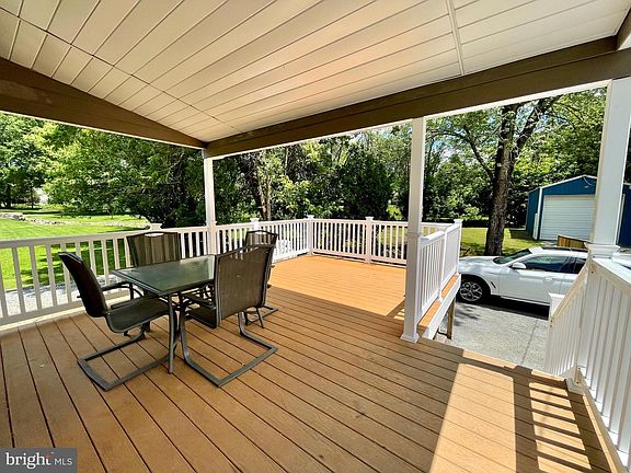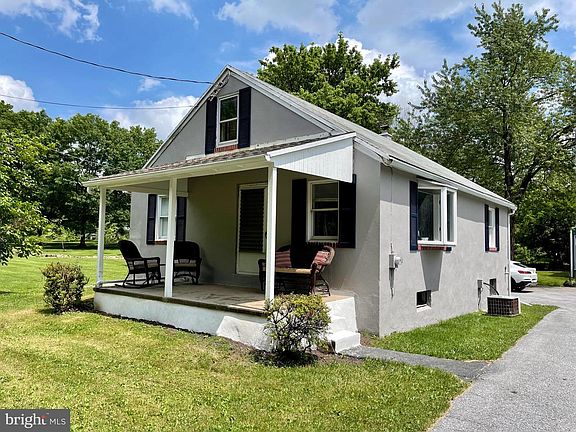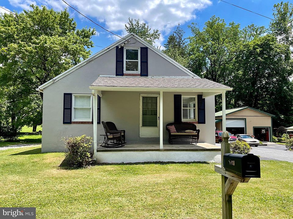 The welcoming, covered front porch leads to the living room with a side bay window and hardwood flooring. There are 2 bedrooms, 1 full modern bathroom, and an updated , eat in kitchen that leads to the backyard and deck. The deck has been updated with composite decking and vinyl railings. Half of the deck is covered with a roof so you can enjoy your outside dining in the cool of the shade and the other half is uncovered so you can enjoy the sunshine. The walkup, floored attic could be finished to provide additional living space. While outside, you will enjoy the calm, soothing sound of the creek running through the property. There is a concrete bridge over the creek that leads to a 16x32, 2 plus car pole barn and a spacious backyard, perfect for your evening campfires. Home offers a newer propane gas furnace (2015) , wood stove in basement, and central a/c.