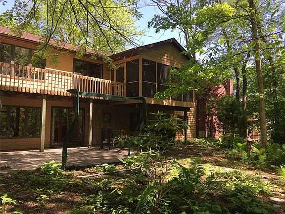 While looking out your balcony screened porch enjoy your 1/2 Acre secluded, wooded, backyard in-town retreat! This Kennedy school district home has 1st Floor Laundry, three bedrooms 2 1/2 baths. Generously sized Master Suite w/ Whirlpool tub and shower. Vaulted ceilings in open Great Room has gas Fireplace. Walkout Lower level has ample room for everyone in either huge Family Room w/wood burning Fireplace or an adjacent Big Game room. Plenty of storage in utility and a poured pad along side garage for Boat or RV.