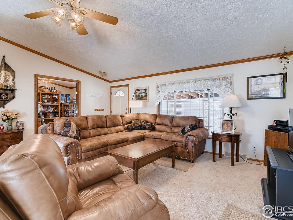 The most well kept, charming, 55 and over manufactured home park around!! Mature trees, bike path nearby, picnic area, horseshoe pit, great central location. Home features, open concept, breakfast bar, ceiling fans, central air, built ins in office, new furnace, wood laminate kitchen, new carpet in living, updated double pane vinyl windows, newer roof, vaulted ceiling, jetted tub in master bath, oversized carport with built in storage shed, lawn sprinkler system, free outside water for lawn