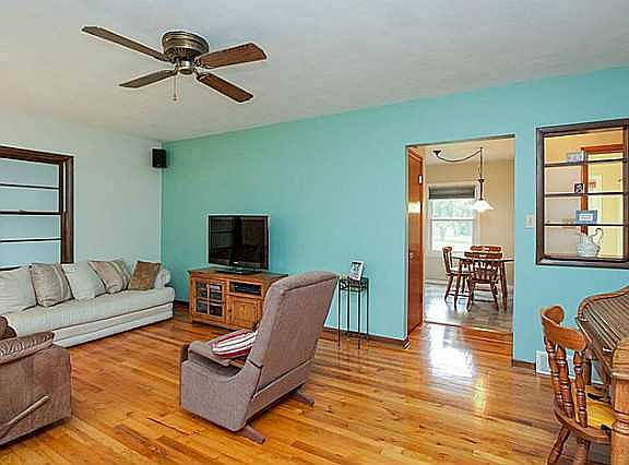 This charming little ranch won't last long at this price. Huge half acre lot and mature trees puts this on your short list.. This home has been well maintained and taken care of for years! 2 nice sized bedrooms and bath upstairs with partially finished basement makes this a great starter home for a young family or a nice 'downsize' for those empty nesters. All appliances stay including the washer and dryer. Garage attached to the house by a convenient breezeway.
