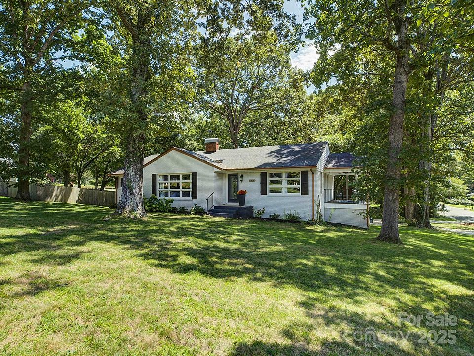 Full of character and modern updates, this 4-bedroom, 2-bath home offers over 1,700 sq ft with a spacious living area and open floor plan that flow easily for everyday living and entertaining. The corner lot sits on nearly half an acre, set back from the main road for privacy with a circular driveway for easy access. The kitchen features a breakfast bar with dining space and connects seamlessly to the main living space, making it a natural spot to gather. The primary suite stands out with large windows, an accent wall, and a fireplace for a comfortable retreat. A basement with exterior access adds storage and flexibility. Outdoors, the side covered deck and large patio extend the home’s living space, perfect for relaxing or hosting guests.