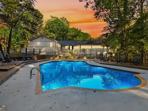 Welcome to your fully furnished rental retreat, a 5-acre oasis just outside Atlanta. This premier estate boasts 7 bedrooms, 5 baths, and an expansive outdoor entertainment area. Ideal for film crews and corporate retreats, it accommodates up to 20 guests. Enjoy privacy, a pool, and parking for 8 vehicles, all secured by an electric gate. The main level features a spacious kitchen with top-tier appliances, a cozy den with a fireplace, and a balcony overlooking the forest and pool. Five bedrooms, including three with ensuite baths, offer luxurious accommodations. The ground level hosts a theater room, game room, and wet bar, all opening to the outdoor living areas and pool. With ample parking, laundry facilities, and entertainment options, this estate promises an unforgettable getaway for any occasion. Available for lease terms of 30 days or longer. Copyright Georgia MLS. All rights reserved. Information is deemed reliable but not guaranteed.