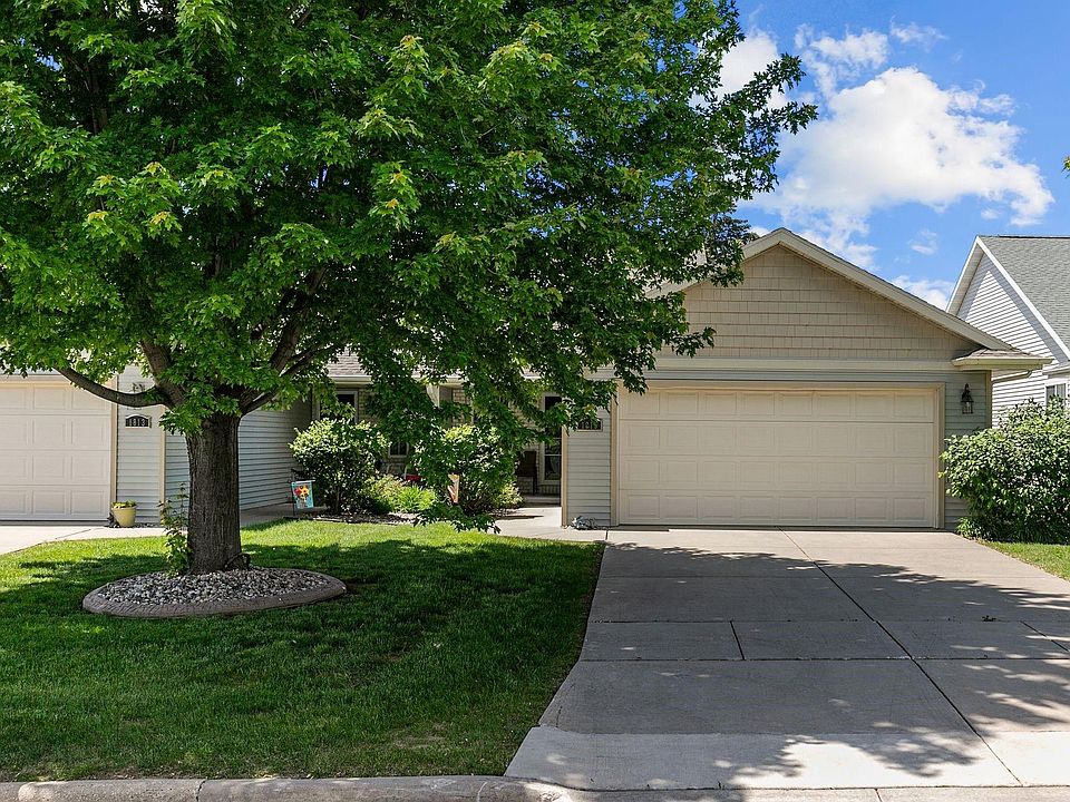Carefree living at its best awaits you in this quality-constructed, open-concept ranch condo. Features include hardwood floors, fireplace, cathedral ceilings, and a master suite with bath and large walk-in closet. The living room & master bedroom both have patio door access to an outdoor patio. The kitchen boasts a raised snack bar and appliances included. The 2nd bedroom's ideal location offers privacy, making it perfect for a guest room or office/den, and it's conveniently situated near the home's second full bath. Additional features include a 2-car attached garage & 1st floor laundry. Fabulous location, so close to many conveniences. It's time to relax and let someone else mow the lawn and shovel the snow, you've earned it! Bonus...all for an affordable $150 per month condo fee.