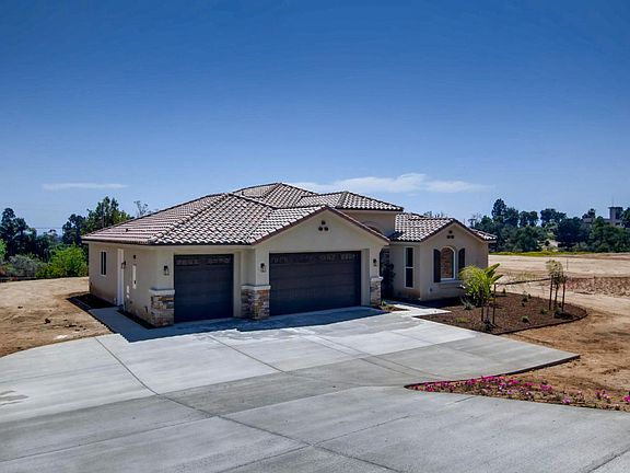 NEW CONSTRUCTION! This home is completed and available for move-in! Sprawled a one acre lot, this beautiful custom 2,702 square foot home celebrates entertaining with its spacious floor plan, open air central courtyard, and covered back patio. The home's masterful mix of modern architecture and timeless design embraces natural light and open living. The luxurious master suite includes French Door access to the back patio, a spa tub, his and hers vanities, frame-less walk-in shower, separate water closet and spacious walk-in-closet. The three other bedrooms each have large closets and private access to a full bathroom and nine-foot ceilings. The kitchen is the focal point of the open concept living area and includes a pantry and large central island with bar-top seating. Unparalleled house on HUGE 43,995 sf lot, rarely available in new builds. Less than 2 miles to downtown Fallbrook! An opportunity to own a brand new custom home on this size lot is hard to come by! Call us today to learn more!