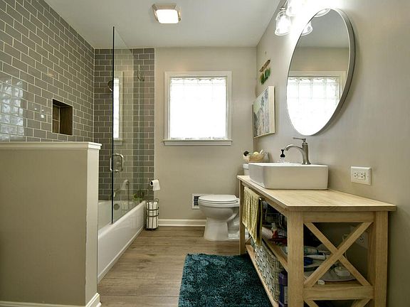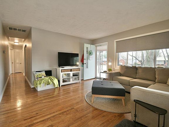 Gorgeous and updated three bedroom brick ranch with a spacious two and a half car garage in a great East Louisville location. This home has an open feel as the living room opens to the dining area.The beautifully renovated bathroom showcases a stylish vessel sink vanity and gray subway tiles. There are rich hardwood floors, efficient replacement windows (2017), and a convenient first floor laundry found in the mud room just off the kitchen. Enjoy spending time outdoors on this quarter acre lot, either on the large deck overlooking a fish pond in the fully fenced and roomy back yard or on the inviting front porch. Make plans to see this lovely home today - It could very well be your new happy home!