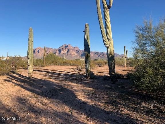 Amazing Lot among beautiful custom homes. Build your dream Home here! Great view of Superstition Mountains. Lot is flat and has its own well. Over a dozen huge saguaro cactus. Bring as many horses as you like. Property is in the city of Apache Junction so you have some city services included. NO HOA. Power on west end of lot. Private water company is near east end of lot. Views like no other!! Well is as-is. Owner has no knowledge of well. Owner is licensed Arizona Realtor. Buyer to verify all information regarding this lot.