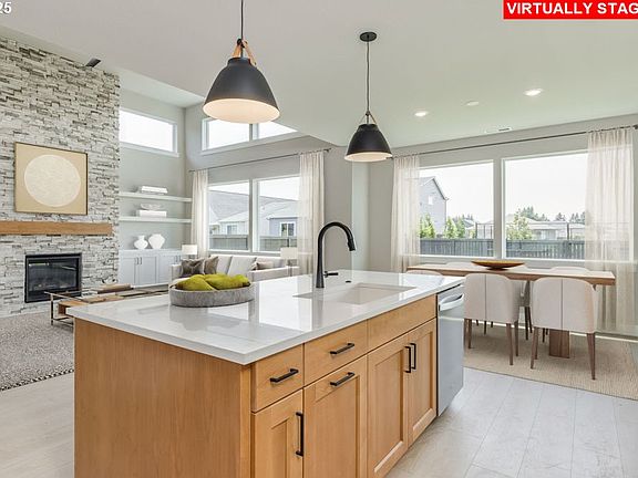 Move in ready! Impressive 2,855 sq. ft. with a huge 3 car tandem garage, complete with 5 bedrooms, 3 bath plus a rec room. Architectural detail; including full height stone fireplace, coffered ceilings, large unobstructed windows, & high quality finishes make this design, an absolute stunner. The heart of this home - the kitchen - with adjoining dining & great room with access to the covered patio, make it ideal for entertaining. A hallway leads to one of the home's flex rooms & full bath located on the main floor, which creates a nice, secluded area from the rest of the rooms. Upstairs is highlighted by a spacious rec room, which is the perfect space to do just about anything, depending on your living needs. The primary suite is elevated by its size, beautiful windows help bring the outside in, and the primary bath centered around a free-standing tub, complete this spectacular primary suite. Once you see all of the detail this home has to offer; from stainless steel appliances and quartz countertops to plenty or storage space, you?ll find it is simply magnificent. The areas beautiful and peaceful surroundings with community park, trails, & amenities will carry over into the everyday way of living that continues into your home. Mark's Place master planned community borders the beautiful Molalla River, which is home to wildlife and waterfowl of all varieties. Residents have ample opportunities to hike, fish, swim, boat, or jet ski all within a couple miles of the city. Close to Canby's quality schools, parks, and local shopping. Concessions available! Please contact agent.