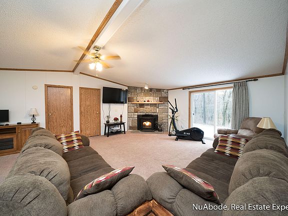 Pride of ownership is obvious in this beautifully maintained home. Large open living room with built in pellet stove and cathedral ceiling. Large kitchen and dining room. Spacious master suite with large walk-in closet, master bath with garden tub!! HUGE garage that will easily fit 3 to 4 cars depending on size. Home is located across from State Game Area, great hunting!! Several updates includingnew carpet, fresh paint and newer appliances, all new duct work, new slider door and new sinks through out. Don't miss your opportunity to be the next proud owner!